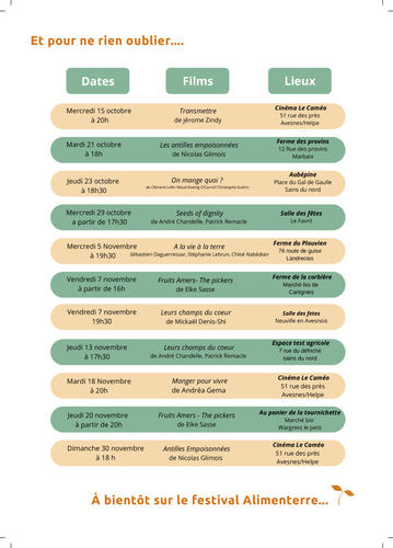 Et d'autres séances à découvrir sur le dépliant du cinéma LE CAMEO avec le collectif Les Parasites