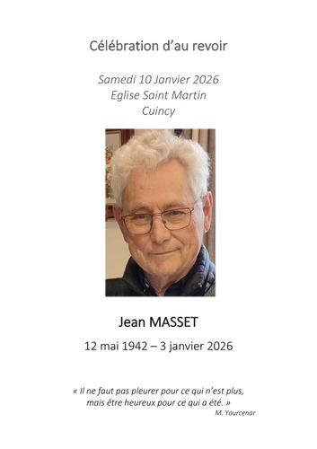 Jean Masset nous a quittés le 3 janvier 2026 .